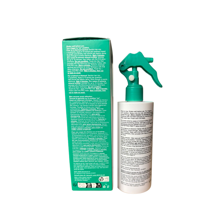 Reset your hair with the K18 Peptide Prep Pro Chelating Complex, a professional-grade detox spray designed to remove metals, minerals, and impurities before treatments or colouring. Powered by K18Peptide™ technology, it preps hair for the best results without compromising health or strength.