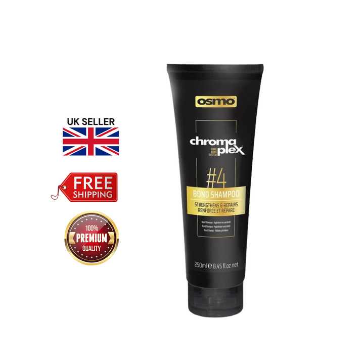 Revitalise and protect weakened or colour‑treated hair with Osmo Chromaplex #4 Bond Shampoo 250 ml—an advanced, salon-quality cleansing system designed to strengthen and rebuild hair from within. This gentle, sulphate-free formula uses Osmo’s signature Fibre Bond Technology to repair structural damage and improve elasticity, while also extending the vibrancy of your colour with its Colour Save Complex and built-in UV filters.